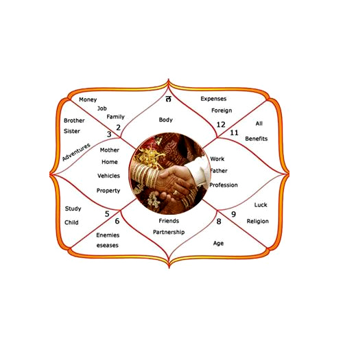 Kundali matching analyzes compatibility between two partners based on 36 Gunas. It helps ensure a happy, stable, and prosperous married life by checking harmony in health, finance, and family life.